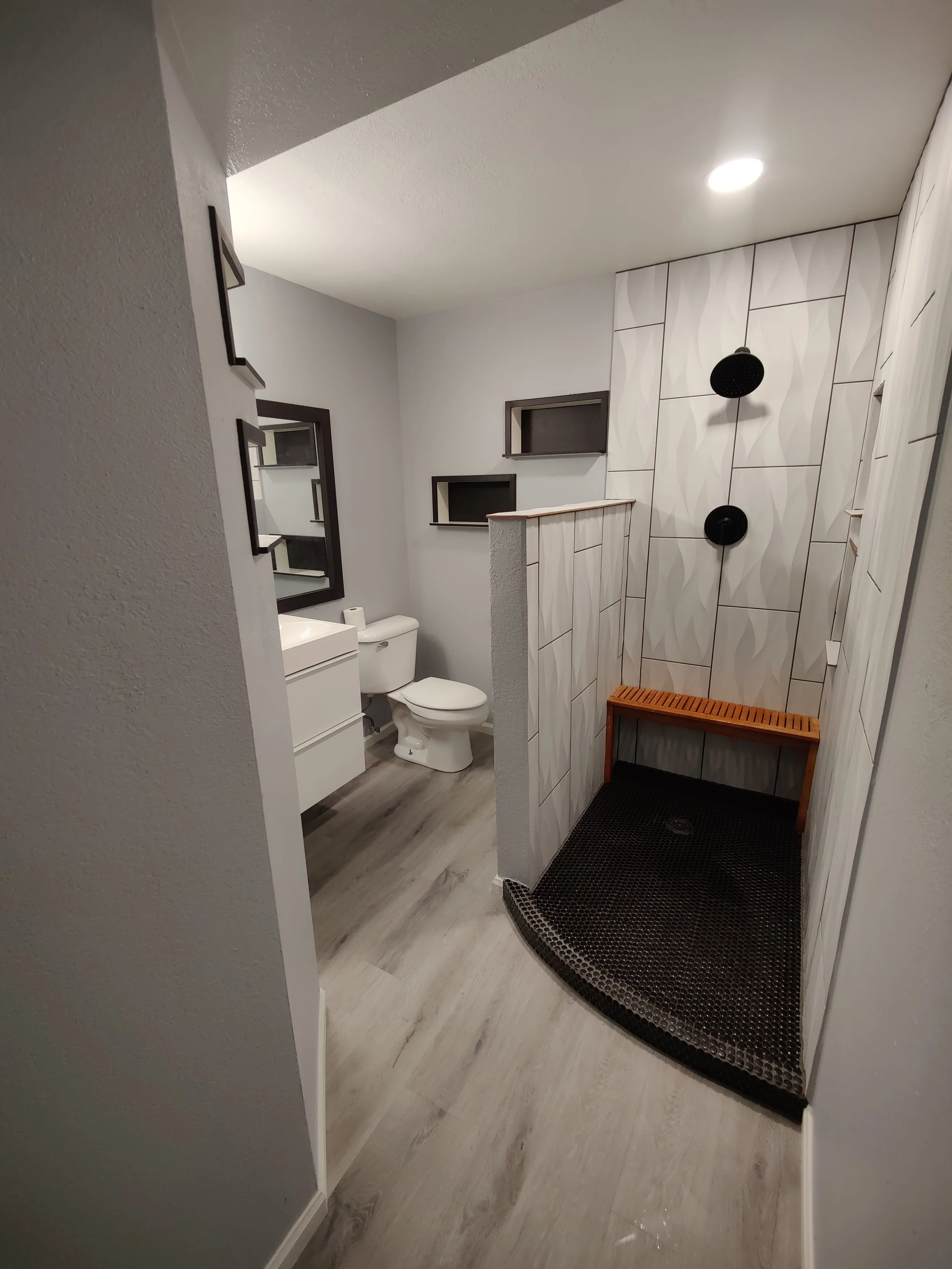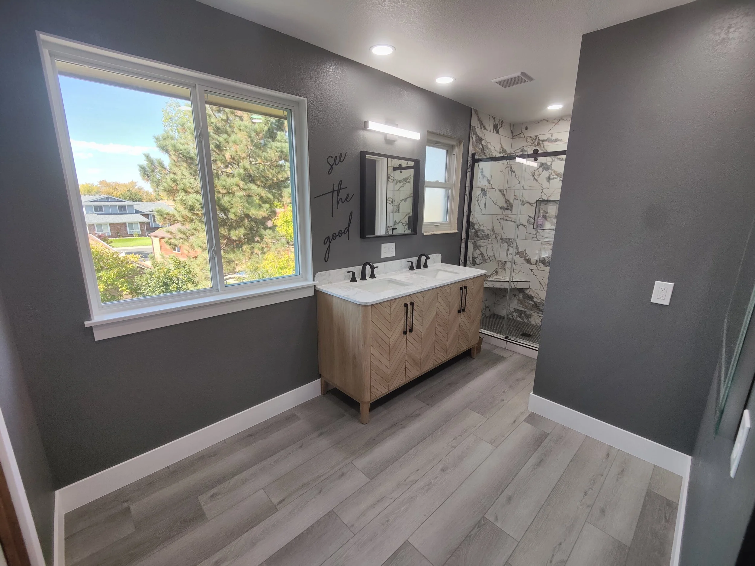 Interior Renovations Bathrooms Kitchens Basements Flooring, Baseboards, and Trim Exterior Transformations Decks Landscaping Fences Patios Windows, Siding, and Doors Specialty Work Woodwork Custom Cabinets, and Storage